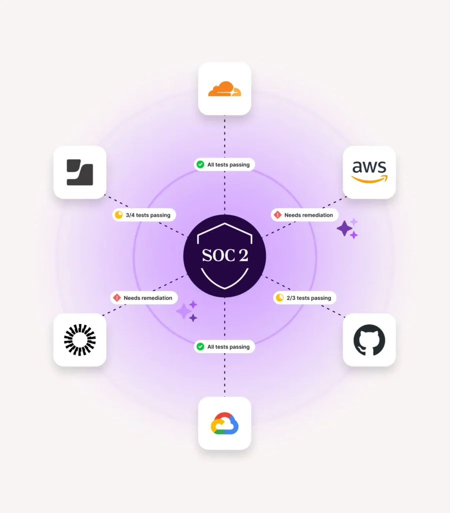 Simplifies SOC 2 compliance by continuously monitoring your controls, collecting audit evidence across your cloud, code, and identity stack, and guiding remediation with AI-driven insights. No spreadsheets. No last-minute panic. Just continuous compliance, built for modern teams.